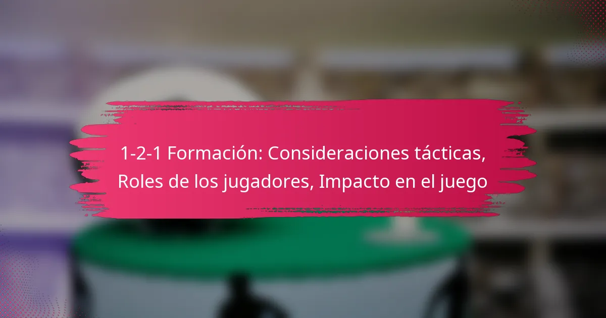 La formación 1-2-1 es un arreglo táctico que prioriza una sólida base defensiva mientras proporciona oportunidades para el juego ofensivo. Con un jugador en defensa, dos en el mediocampo y uno en la delantera, esta configuración fomenta un enfoque equilibrado que puede responder de manera efectiva a las dinámicas cambiantes de un partido.