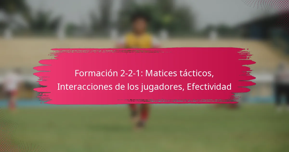 La formación 2-2-1 es un arreglo táctico que cuenta con dos defensores, dos mediocampistas y un delantero, diseñado para crear un equilibrio entre la defensa y la ofensiva. Esta estructura no solo facilita un control efectivo del balón y un juego de transición, sino que también mejora la gestión del espacio, permitiendo a los equipos adaptar sus estrategias contra diferentes oponentes. Comprender los roles e interacciones distintos de los jugadores dentro de esta formación es esencial para optimizar su efectividad en varios escenarios de juego.