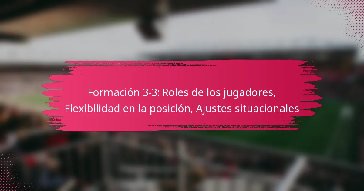 La formación 3-3 cuenta con tres defensores, tres mediocampistas y tres delanteros, cada uno con roles distintos que contribuyen a la estrategia general del equipo. Esta formación permite flexibilidad en la posición, lo que permite a los jugadores adaptarse dinámicamente durante un partido para responder a diversas situaciones de juego. Los ajustes situacionales efectivos basados en el contexto del partido son cruciales para mejorar tanto las capacidades ofensivas como defensivas, asegurando que el equipo se mantenga competitivo a lo largo del juego.